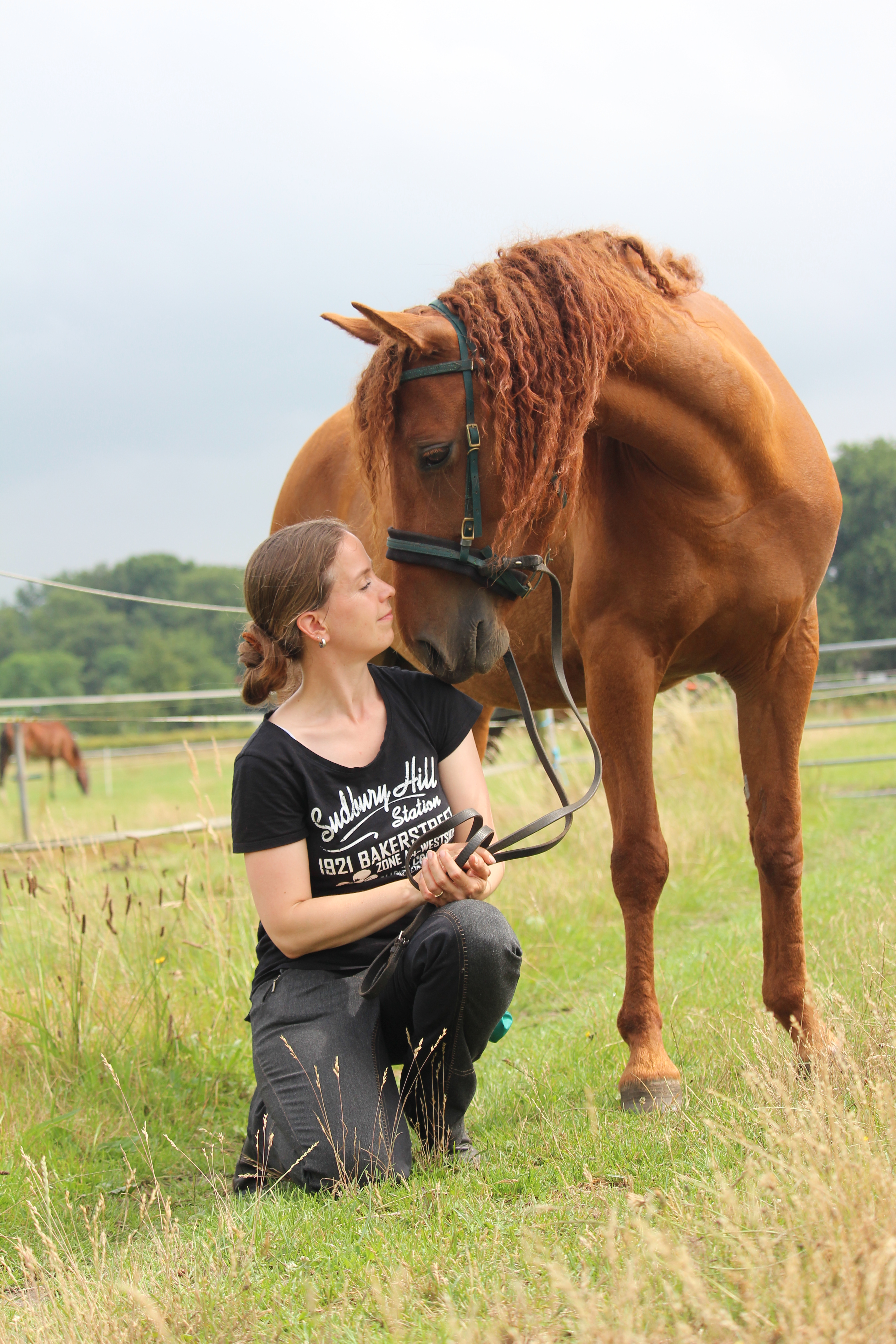 In 2014 heeft Voelie een prachtig hengstveulen gekregen en bewees ze een goede fokmerrie en moeder te zijn. Voelie is de enige nakomeling van de Duitse Curly hengst GW Spirit en brengt daarmee wat nieuw bloed in de Curly wereld. Voelie is in 2010 licht ingereden maar dit is niet doorgezet/ bevestigd. Hierin heeft ze behoefte aan een ervaren ruiter / trainer die haar helpt leren en zaken te bevestigen. Ik beschouw haar daarom ook als groen en om die reden niet als 'beginnerspaard'. Ze is braaf in de omgang, een echte knuffel op de wei, gaat goed op de trailer en staat netjes bij de smid. In de wei kan ze makkelijk met andere paarden (niet dominant). Ze is gewend het hele jaar door 24-7 buiten te staan.