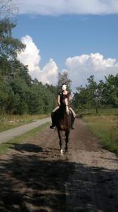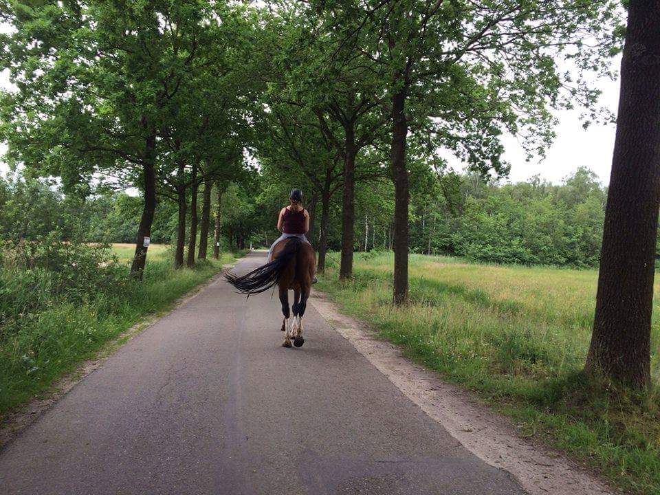 Ik heb er ook enkele beginners op laten rijden, zowel in de bak als bos, dit doet hij prima maar daar ben ik altijd bij gebleven.