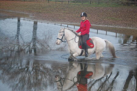 Ik denk dat een goede ruiter met voldoende geduld het wel weer goed krijgt, maar ik durf niets te garanderen. Vandaar dat ik hem bij voorkeur verkoop aan iemand die een gezeldschapspony of menpony zoekt. Aangezien hij zo braaf is op buitenritten en een erg relaxed karakter heeft, denk ik dat hij het voor de wagen goed zou doen.