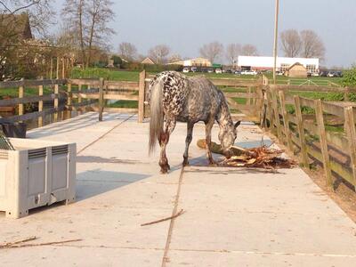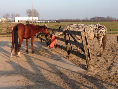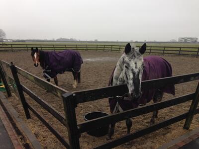 Wij hebben een box vrij op deze gezellige kleinschalige stalling aan huis. Paarden komen ruim buiten: in de zomer 24/7 weidegang en in de winter staan ze 8-10uur buiten en 's nachts op stal. In de winter staan ze deels op een verharde plaat en deels in de bak, worden ze gevoerd via slowfeeders/hooitassen. Er is een verlichte rijbak (ongveer 20x30) aanwezig die tevens dus als losgooi paddock wordt gebruikt. De paarden staan op zaagsel, bij de prijs zit een half pak zaagsel per week ingerekend + hooi. Er is plek voor 3 paarden, er staat al een appaloosa en arabier, beide merries dus zowel ruin als merrie is welkom. Binnen en buitenzetten regelen we onderling, we stellen ons hierin allemaal flexibel op dit geeft tot nu toe geen problemen.