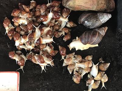 Ik heb een nestje Achatina fulica white jades gekregen, en ze mogen weg.
