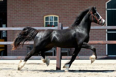 Arvalon Vivaldi (drie witte benen) is in Duitsland geboren bij de Arvalon Stud en heeft als afstamming: Llechlwyd Tywysog Du x Nebo Daniel x Brenin Dafydd.