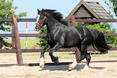 Hewid Denzil (vier witte benen) is in Groot Brittannië geboren bij de Hewid Stud en heeft als afstamming: Coednewydd Kalypso x Hwylog Welsh Flyer x Paith True Magic.