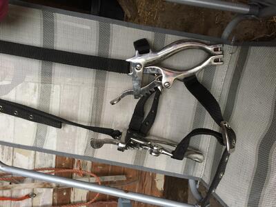 Handige mondklem, nooit hoeven gebruiken. Maakt het net even makkelijker om in de mond van je paard te kijken.