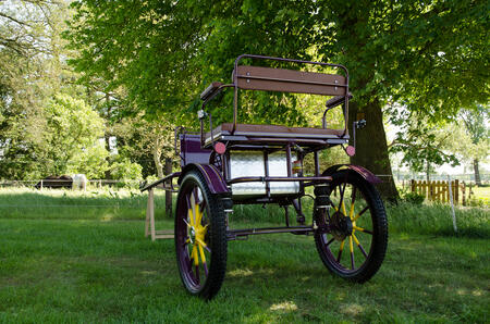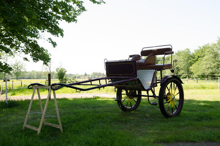 Er zijn helaas maar weinig ritten met deze leuke wagen gemaakt. De wagen is geschikt voor paarden met een schofthoogte van ongeveer 1.45m tot 1.60m. Door middel van het verschuiven van het bankje is de wagen goed in balans te krijgen.