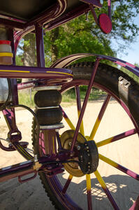 Zeer nette paars met gele Excellent tweewieler sulky. Bouwjaar 2011.