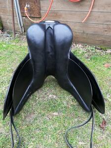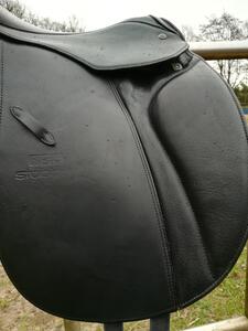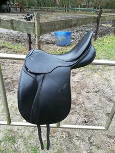 Anderhalf jaar oud dressuur zadel van Stubben, type Avalon 17,5" die neigt naar 18" vanwege de wat vlakke lepel.