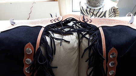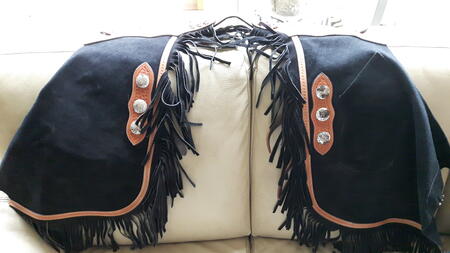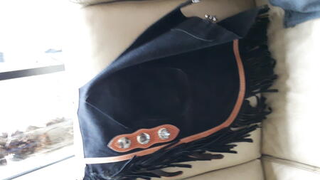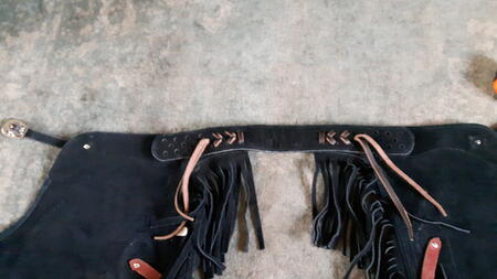 western chinks, riem kan max. 91 cm. maar kan nog groter aan achterkant. been lengte 57cm.