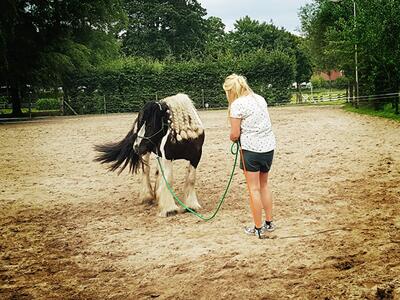 Het is wel een ontzettend lieve en betrouwbare merrie, totaal niet gemeen, nog nooit getrapt of iets dergelijks. Op de grond 100% te vertrouwen. Bij angst is haar reactie weglopen/wegrennen, maar goed te sturen op lichaamstaal. De pony heeft leuke gangen als je haar in training zet, ze heeft sinds de zomer niets anders gedaan dan in de weide staan.