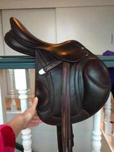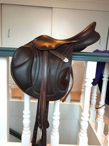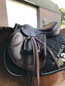 Het zadel is volledig bruin en maat is 17". zit op dit moment even uit mijn hoofd een medium-wide boom in, maar dit is aanpasbaar. Is destijds gekocht bij country mill voor €3.200 euro. Komt inclusief hoes, en exclusief accecoires zoals stijgbeugels.