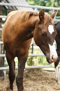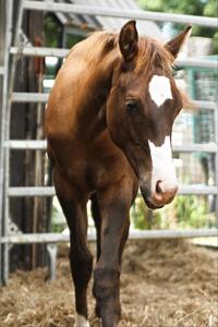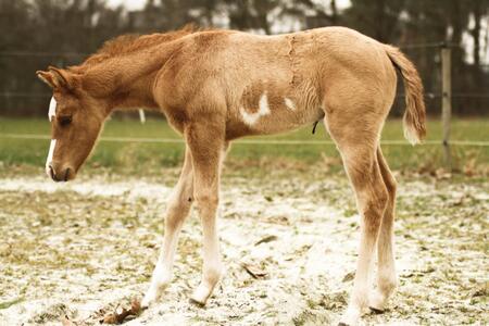 Hij is prachtig gebouwd, heel stevig en zal rond de 155 cm groot worden. Reining/allround gefokt.