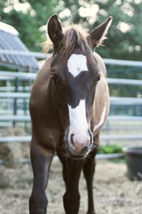 Een super lief en aanhankelijk veulen, hij komt meteen afgelopen voor knuffels en aandacht. Klaar om z’n nu mama te verlaten!