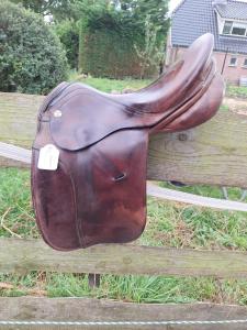 Prachtig bruin 18 inch zadel met de befaamde rode clipjes