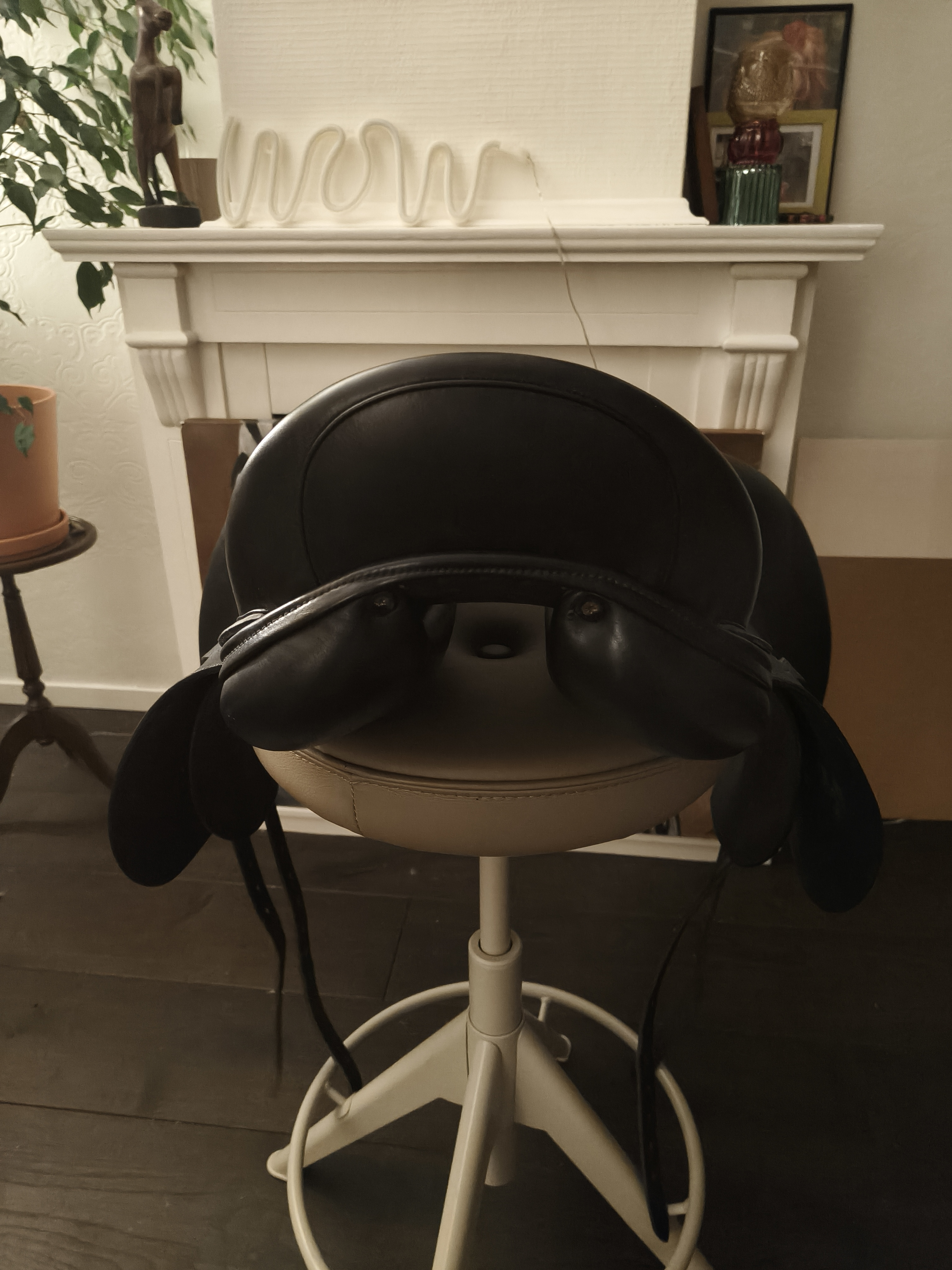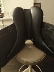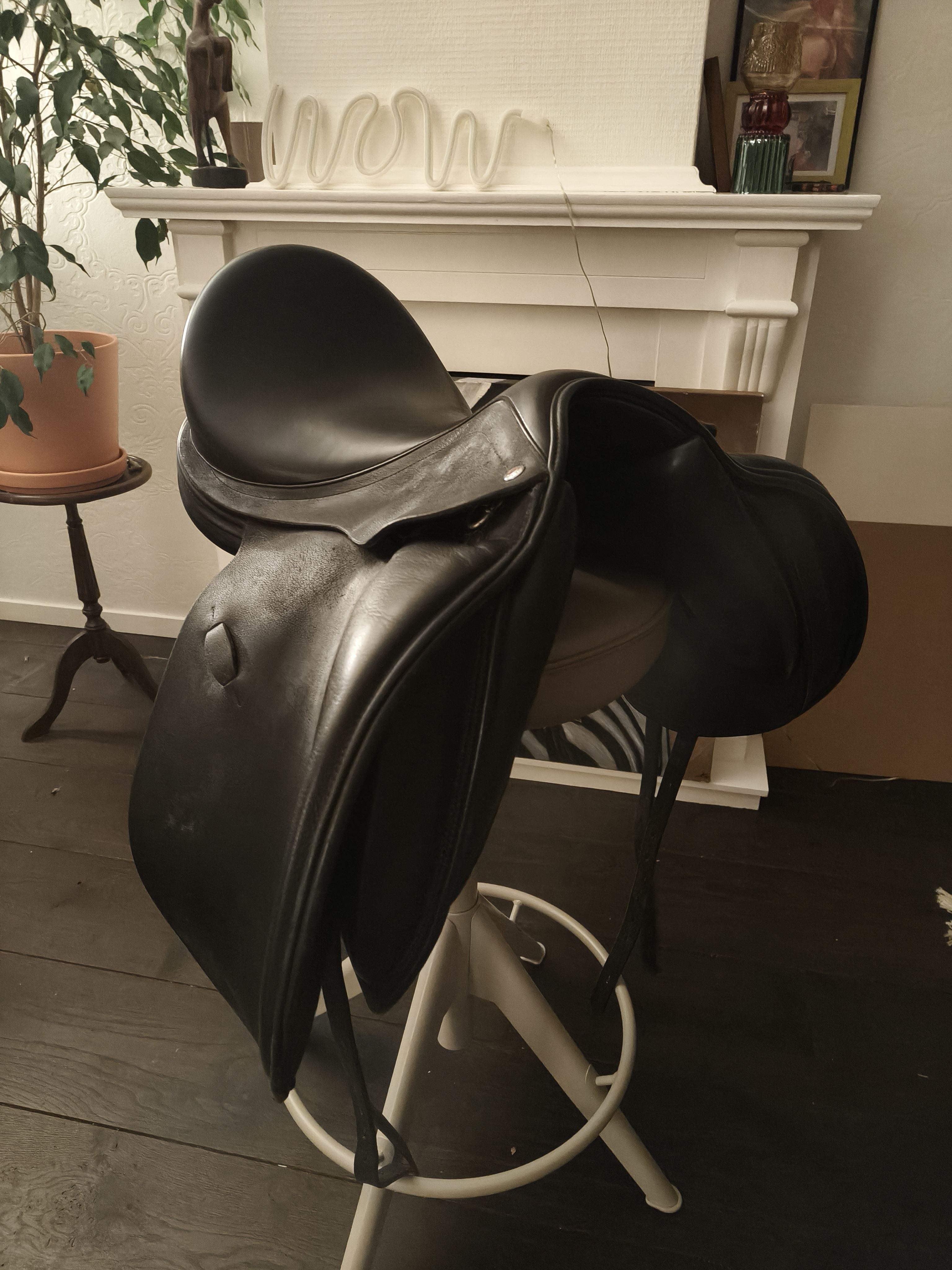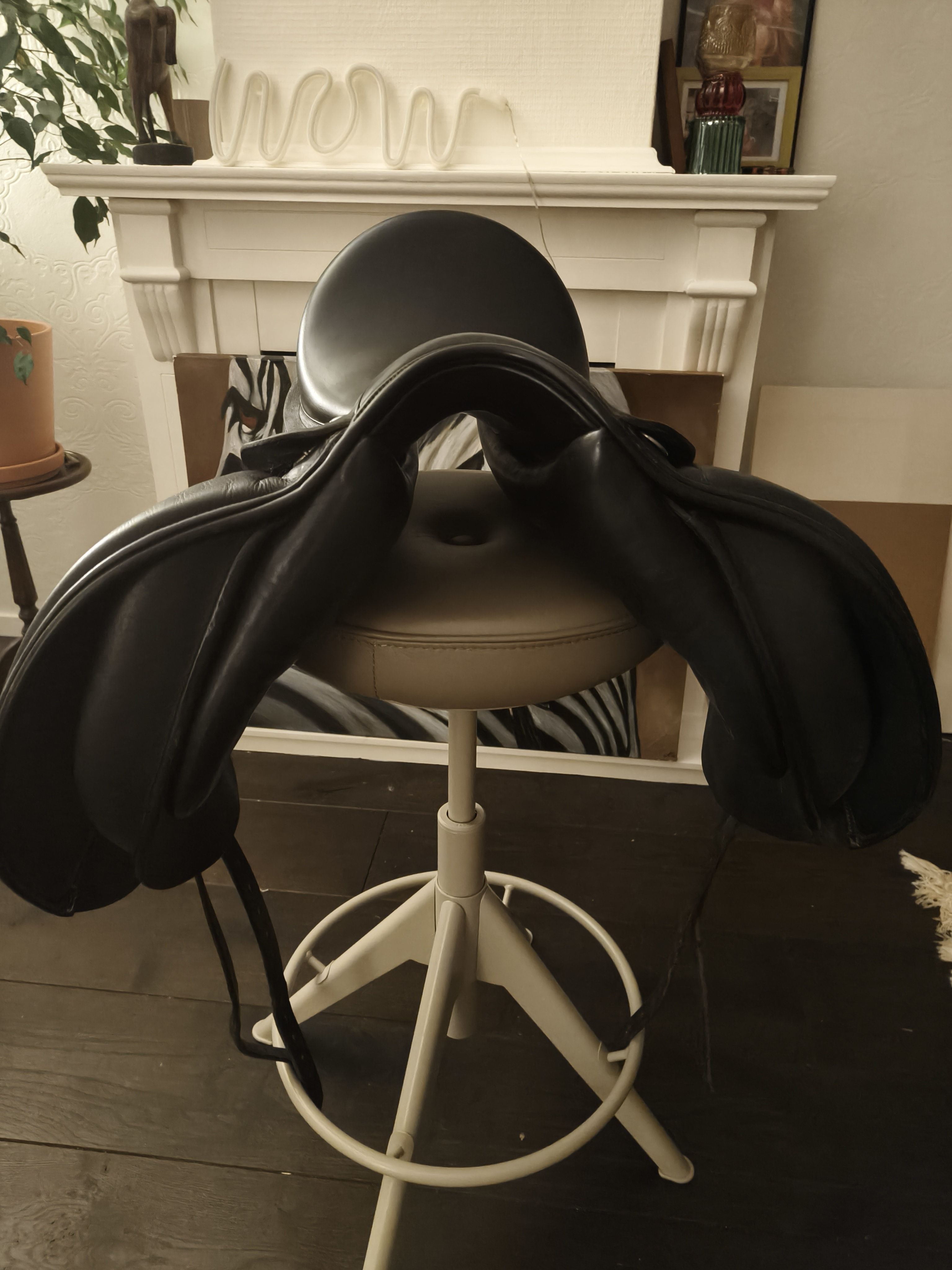 Wolvulling, singelstoten en zitvlak in zeer goede staat. Het zadel is heel weinig gebruikt en zit heerlijk.