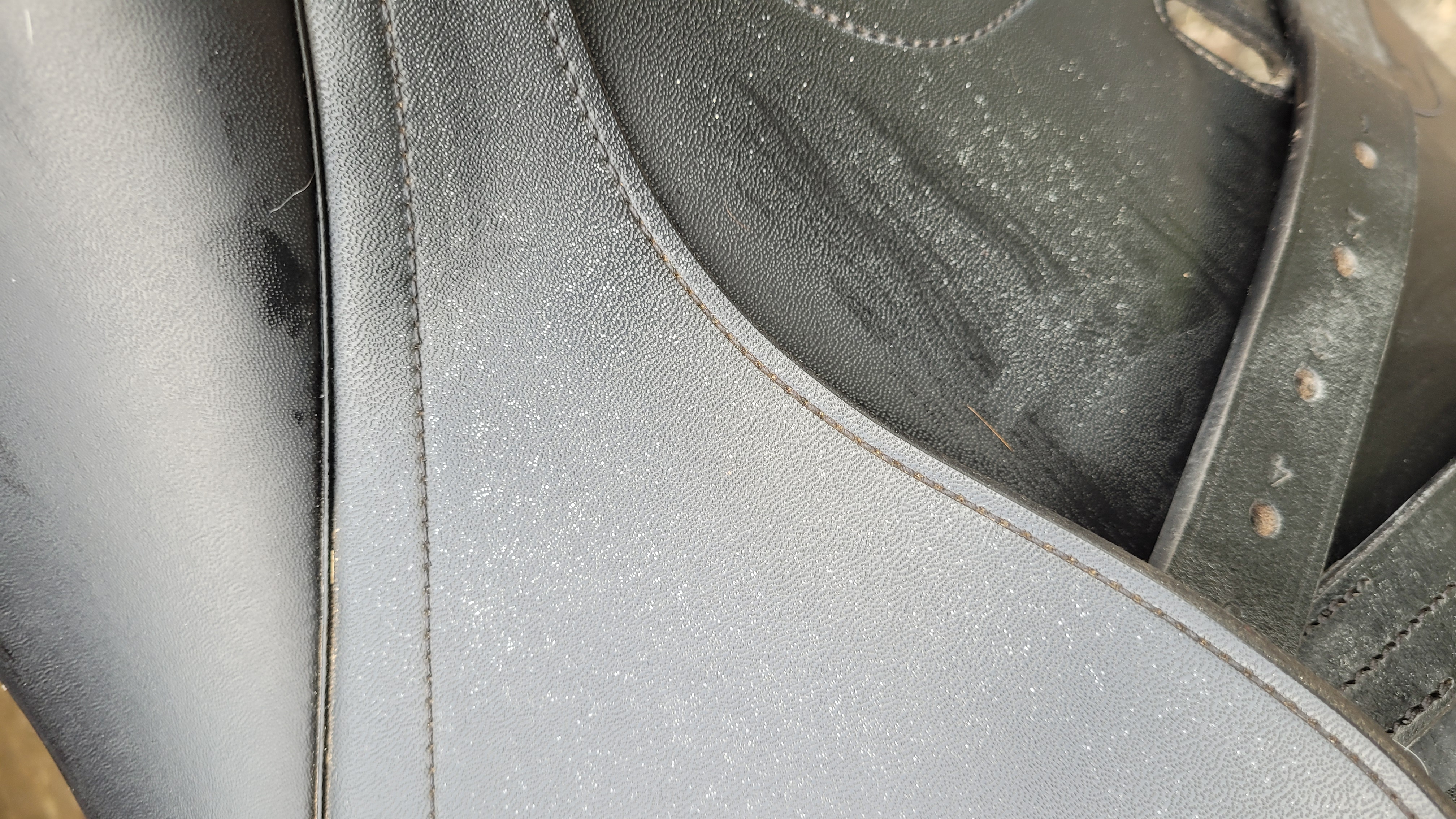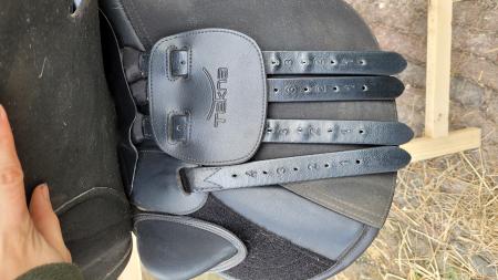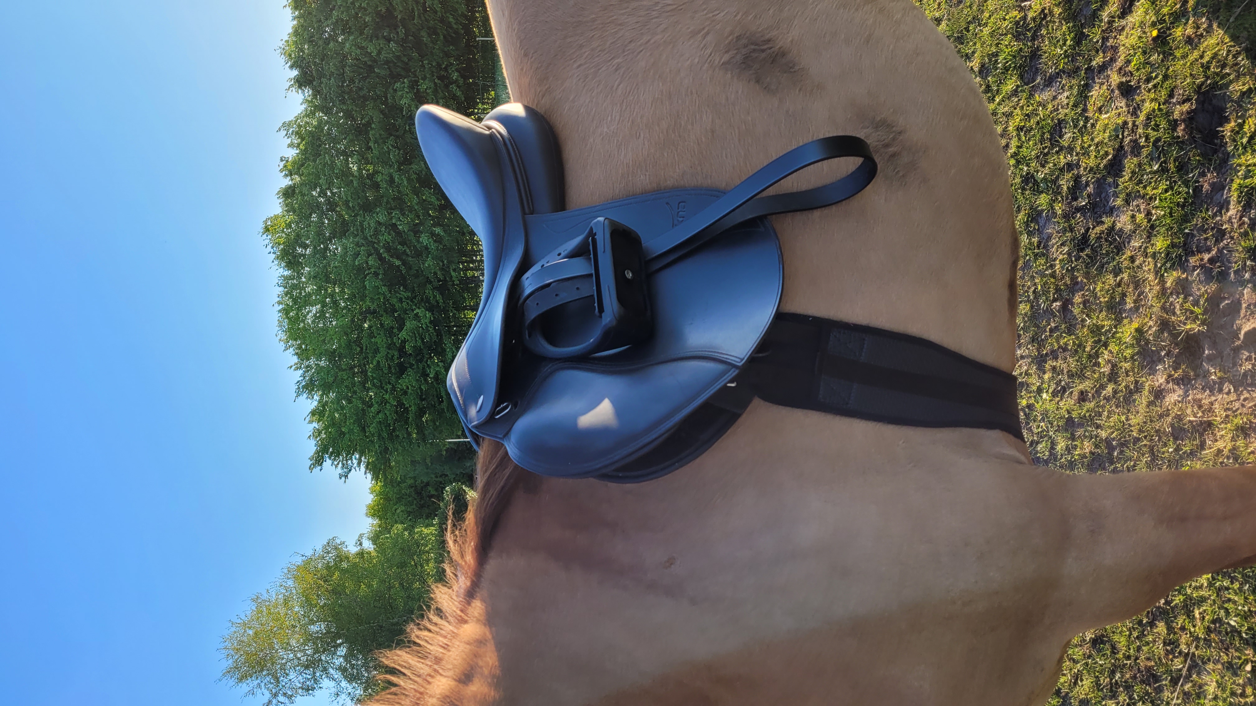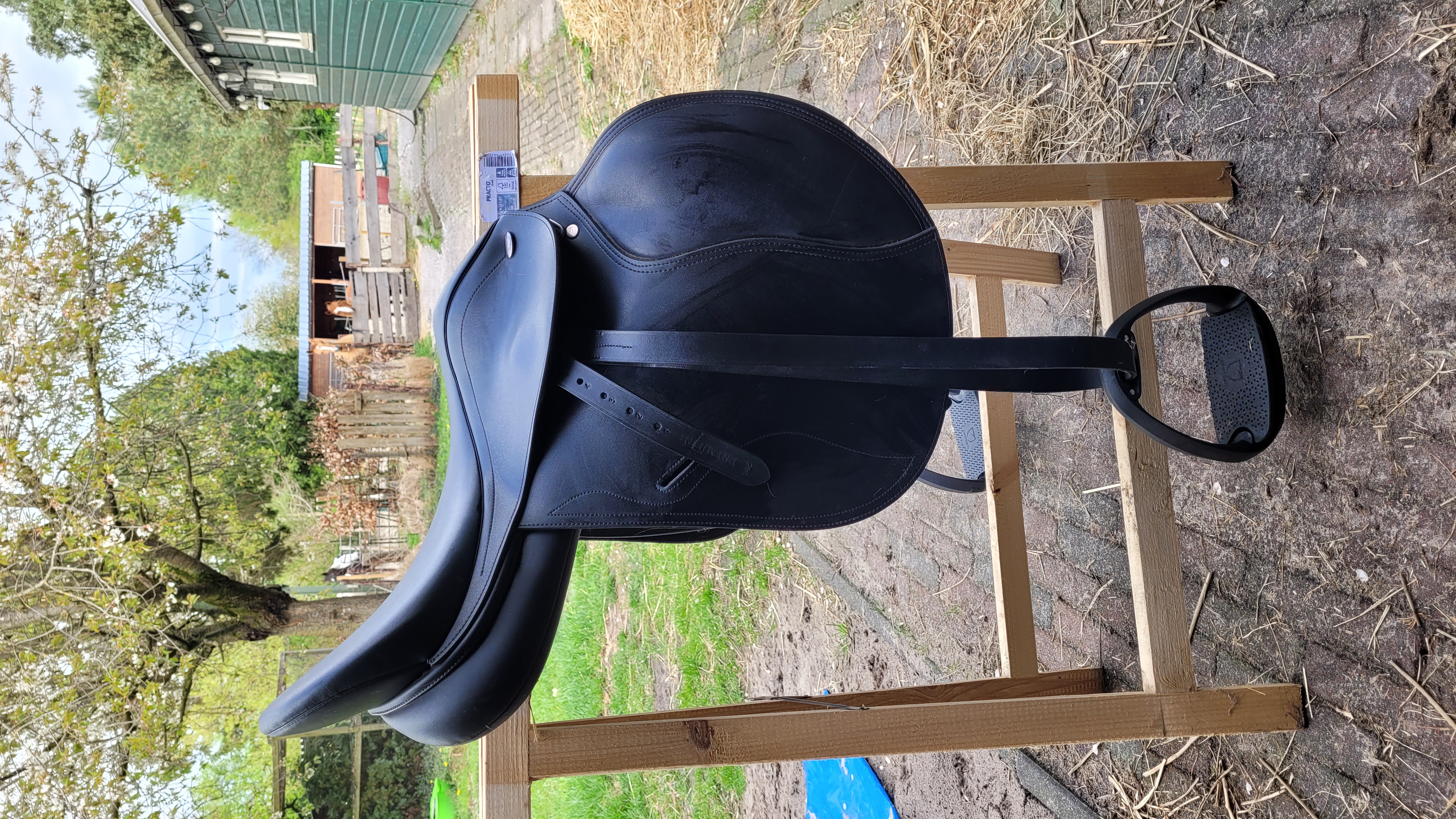 Veelzijdigheidszadel met verwisselbare boom, zit nu een MW kopijzer in. 17 inch Geen beschadigingen, aan de linkerkant is er wel enige witte verkleuring (zie closeup). Gaat kaal weg, dus geen beugelriemen en beugels. Verzonden = verkocht