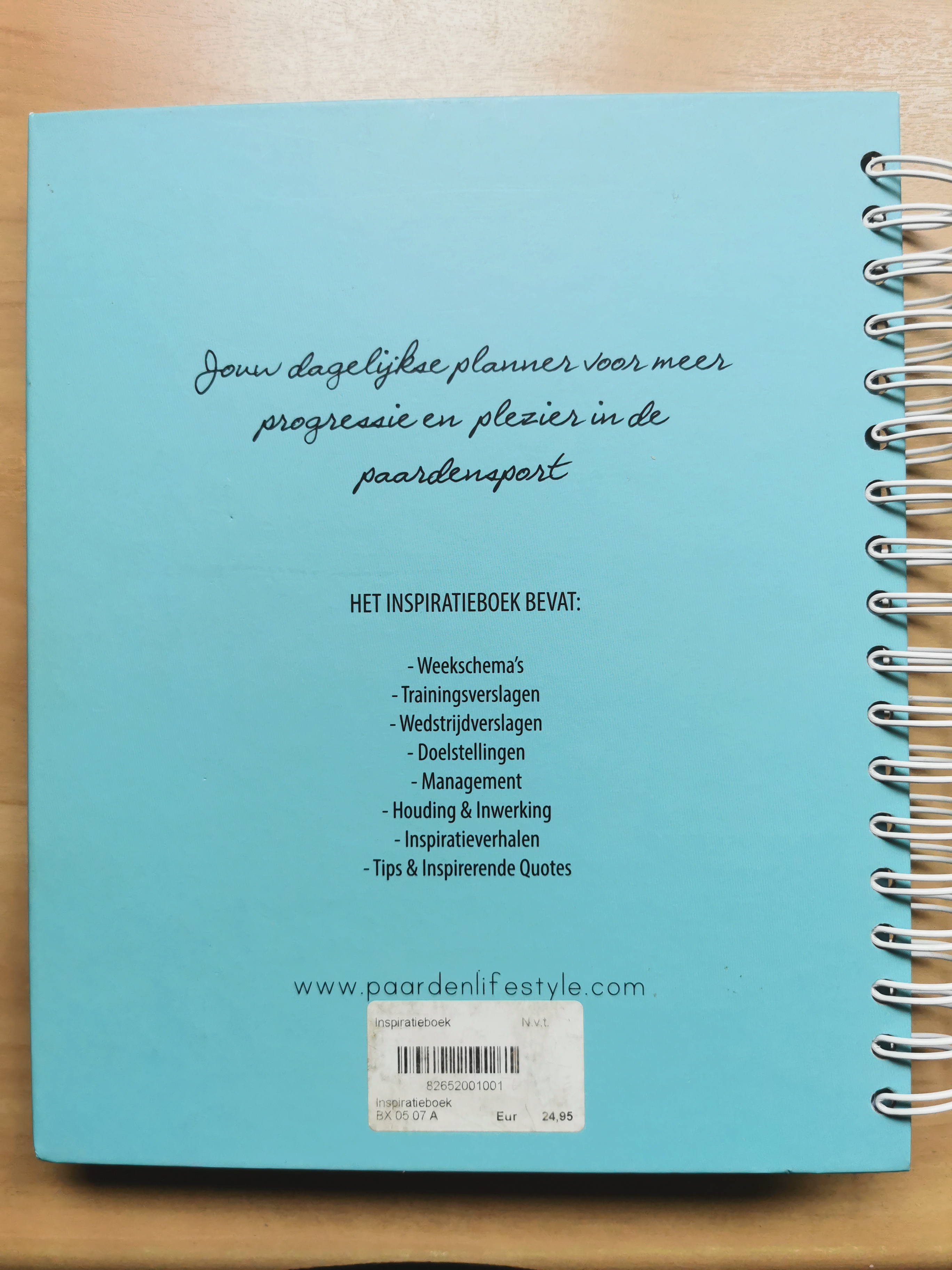 Het Paard & Lifestyle Inspiratieboek te gebruiken als notitie / dagboek voor jou en je paard. Het boek is gericht op dressuuramazones die wedstrijden rijden. Uitgegeven in het jaar 2017. Nooit in geschreven (zie foto's), maar wel lichte ' krassen' op de omslag voor- en achterzijde van het liggen op de plank.