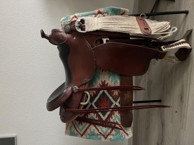 Zo goed als nieuw westernzadel (hoes aanwezig) met rope singel, westernhoofdstel maat full met split reins en westernpad te koop. Onderstaand ook links naar de artikelen voor extra informatie. Allemaal aangeschaft bij EuroHorse. Aankoopbon is aanwezig.