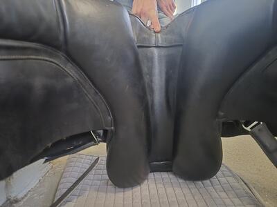 Heel net en fijn Msfc dressuur zadel. Geschikt voor brede en korte paarden. Lag goed op een brede schwarzwalder fuchs.