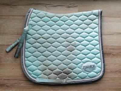 Wegens te weinig gebruiken te koop aangeboden, maat dressuur full. Zadel is zichtbaar op het dekje en nog wat andere vlekjes, is gewassen, maar niet compleet eruit gegaan evenals de haren. Verder in nette staat. Kleur vertekend wat op de foto's, ik zou het omschrijven als blauwgroen. Eskadron noemt de kleur jade. Voorkeur voor ophalen. Verzenden zal alleen lukken in opgevouwen / opgerold formaat.
