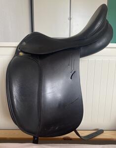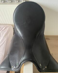 Zeer goed onderhouden en slechts klein jaar gebruikt dressuurzadel van Prestige. 17 inch, boommaat medium. zadel is nog zo goed als nieuw en weer teruggebracht in originele staat. Over passen kunnen natuurlijk afspraken worden gemaakt