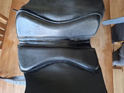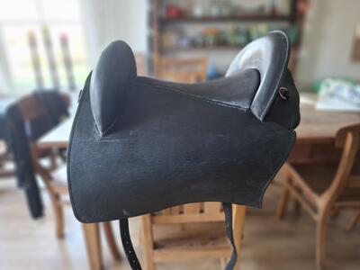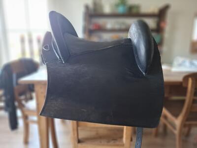 Startrekk Espaniola boomloos paardrijzadel van Deuber. Maat S3. Zwart leder. Inclusief beugels en beugelriemen.