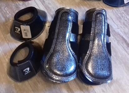 Glanzende glitter bling beenbeschermers SET, welke neopreen zijn gevoerd met twee (elastische) klittenbandsluitingen. Deze set bestaat uit twee paar beenbeschermers (dus zowel de voor- als de achterbenen) ookwel flextrainers genoemd en één paar springschoenen (dus bijvoorbeeld alleen voor de voorbenen). Dit is de LAATSTE set namelijk 1 x maat L / Full - Zwart Zilver. Kijk ook bij mijn andere advertenties! Ik verzend in principe vanuit België, maar ik ben regelmatig in Nederland te vinden, dus stuur mij gewoon even een mailtje, dan kijken we hoe we het beste kunnen verzenden!