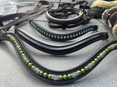 - Moonrian Equistore bruine frontriem met groene steentjes full €30