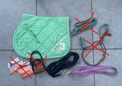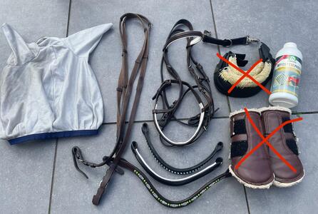 Ik verkoop enkele van mijn paardenspullen. Vieze spullen worden schoongemaakt voor verkoop.