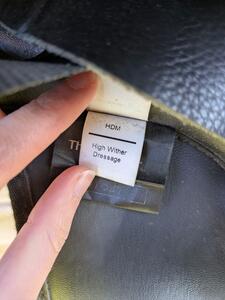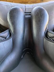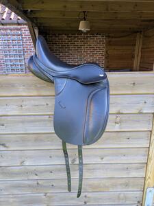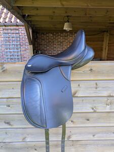 Thorowgood T8 dressuurzadel high wither model. Heeft een verwisselbaar kopijzer. Wijd (rood) zit er in, medium (zwart) heb ik er ook bij.