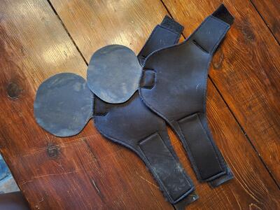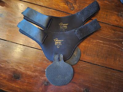 Scootboot gaiters maat L, enkele keren kort gebruikt, zitten bij dit paard echter niet goed.