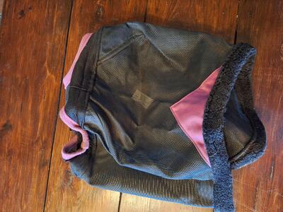 Met gaten voor de oren, stevige klittenband sluiting.