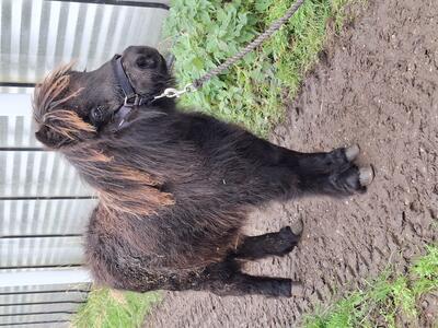 En hij wil nog wel eens aan de staart en manen van een andere pony vreten... Zijn moeder heeft hij goed te pakken gehad. maar nu loopt hij af en toe met een 2 jarige hengst (die spuiten we zijn staart en manen in met anti bijt) en dat lijkt goed te gaan.