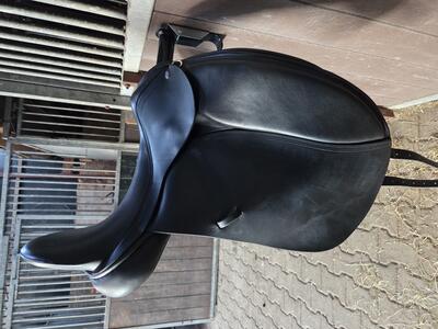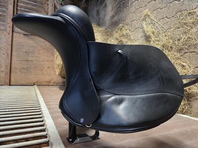 Een functioneel dressuurzadel dat bekendstaat om zijn uitstekende ligging en comfort. De diepe zit en kniewrongen onder het zweetblad zorgen voor stabiliteit, terwijl de uitgesneden voorkant veel schoudervrijheid biedt.