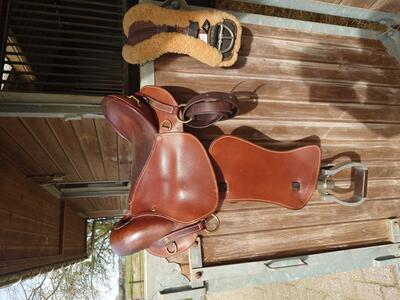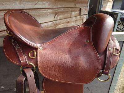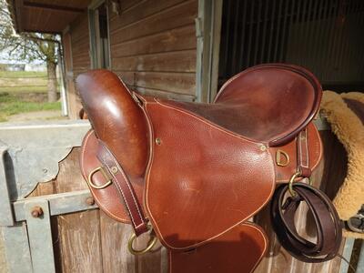 Zadel is gebruikt voor een smalle, maar rond geribde Arabier en voor een brede Freiberger (koudbloed). Het zit heerlijk en is licht in gewicht.