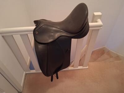 Te koop wegens te brede boommaat 32cm, Mac Rider Olimpic 17.5 inch dressuurzadel zwart. Netjes zadel, wat ouder maar goed onderhouden, stiksel zweetblad laat wat los, eenvoudig te maken. 1 singelstoot gaatje wat beschadigd. Diepe gesloten zit. Vaste prijs, gaat kaal weg. Ophalen. Kussenlengte 48cm. Dikke wrongen. Weinig gebruikersporen.