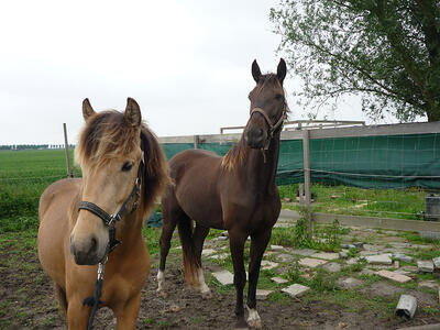 Zowel Duncan als Apollo hebben in de opfok gestaan, en zijn sociaal naar andere paarden. Allebei zijn ze gewend dag en nacht buiten te staan. Ze zijn bij mij geboren en nog nooit ziek geweest. Het gaat me erg aan het hart om ze te verkopen, maar wegens medische problemen zie ik geen andere oplossing. Ze gaan dus alleen naar een zeer goed tehuis en ik zou het erg op prijs stellen als ik ze nog eens op kan zoeken.
