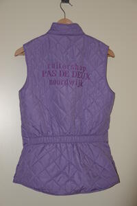 Paarse Harry's Horse bodywarmer. Met op de achterkant "ruitershop pas de deux Noordwijk".