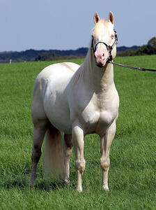 Perlino/dun AQHA hengst, AQHA en APHA geregistreerd. Schitterende nakomelingen die effectief prijzen winnen (inclusief zijn half-Arabische nakomelingen).