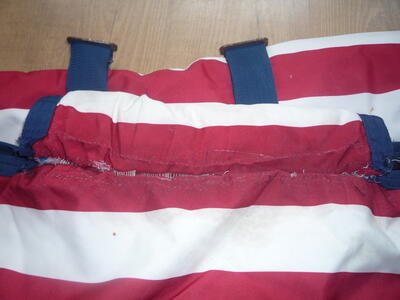 Deken heeft een buikflap, deze is er een keer af geweest en er weer aangemaakt, helaas niet erg netjes gedaan. Is wel opnieuw te doen.