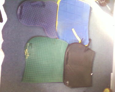 Wegens overcompleet bied ik deze 4 dekjes aan. De groene en zwarte zijn van Harry's Horse, de 2 blauwe zijn merkloos.
