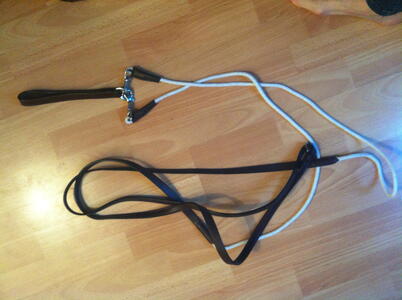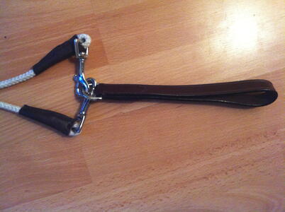 Te koop: slofteugel, ongebruikt. Donkerbruin leer met wit koord. Graag bieden. Verzenden of ophalen in Amsterdam/Amstelveen.