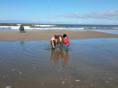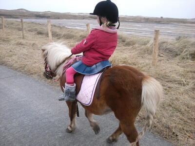 Luna is bomproof en 100 % verkeersmak. Ze is echt superlief,. Mijn dochter haalt haar zelf uit het land, krabt zelf alle hoefjes uit, rijdt er zelfstandig op. Ook op het strand loopt ze los met de pony. We reden overigens bitloos op haar.